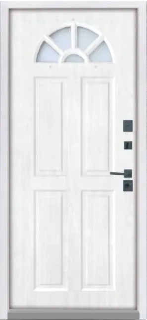 Цвет металла: снаружи черная, изнутри - белая шагрень. Внешняя отделка: МДФ панель 16 мм влагостойкая, винорит Алмон 28. + Декоративные МДФ наличники.