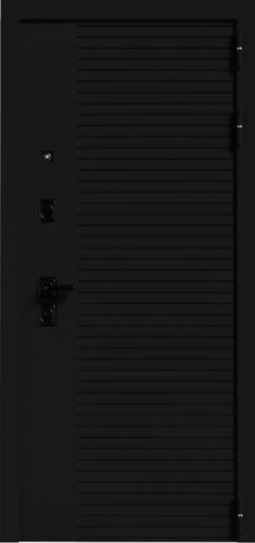 Ручка черная на квадратной планке раздельная стяжная; цилиндр ключ/вертушка, независимая ночная задвижка, глазок над замковой группой.